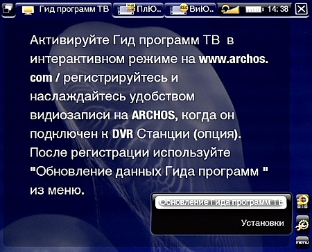 Еще одним разочарованием закончилась попытка воспользоваться Гидом программ ТВ. Как следует из описания, после регистрации на сайте www.archos.com на плеер можно закачивать ТВ-программы, чтобы затем выбирать передачи для записи. Но для России ТВ-программы скачать нельзя.