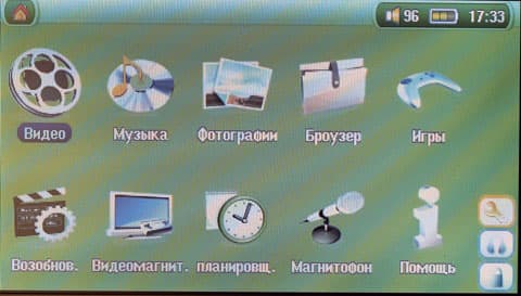 Как я уже сказал выше, основная функциональность устройства не изменилась. Кое-что не меняется уже очень давно — в частности, просматривать можно только изображения в форматах BMP и JPEG (непрогрессивном). Благодаря графическим меню вместо простых софт-кнопок, управление стало чуть более удобным, но радикально ни видеоплеер, ни музыкальный плеер, ни файловый браузер, ни вьюер не поменялись, что хорошо видно на приведенных ниже фотографиях экрана устройства в разных режимах работы: