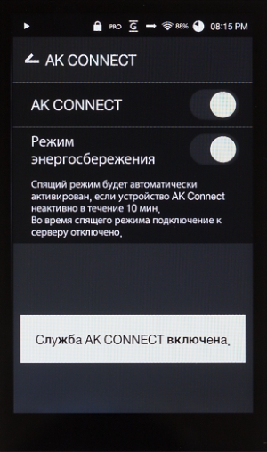 Как и в топовых моделях, есть функция AK Connect, которая позволяет стримить файлы.