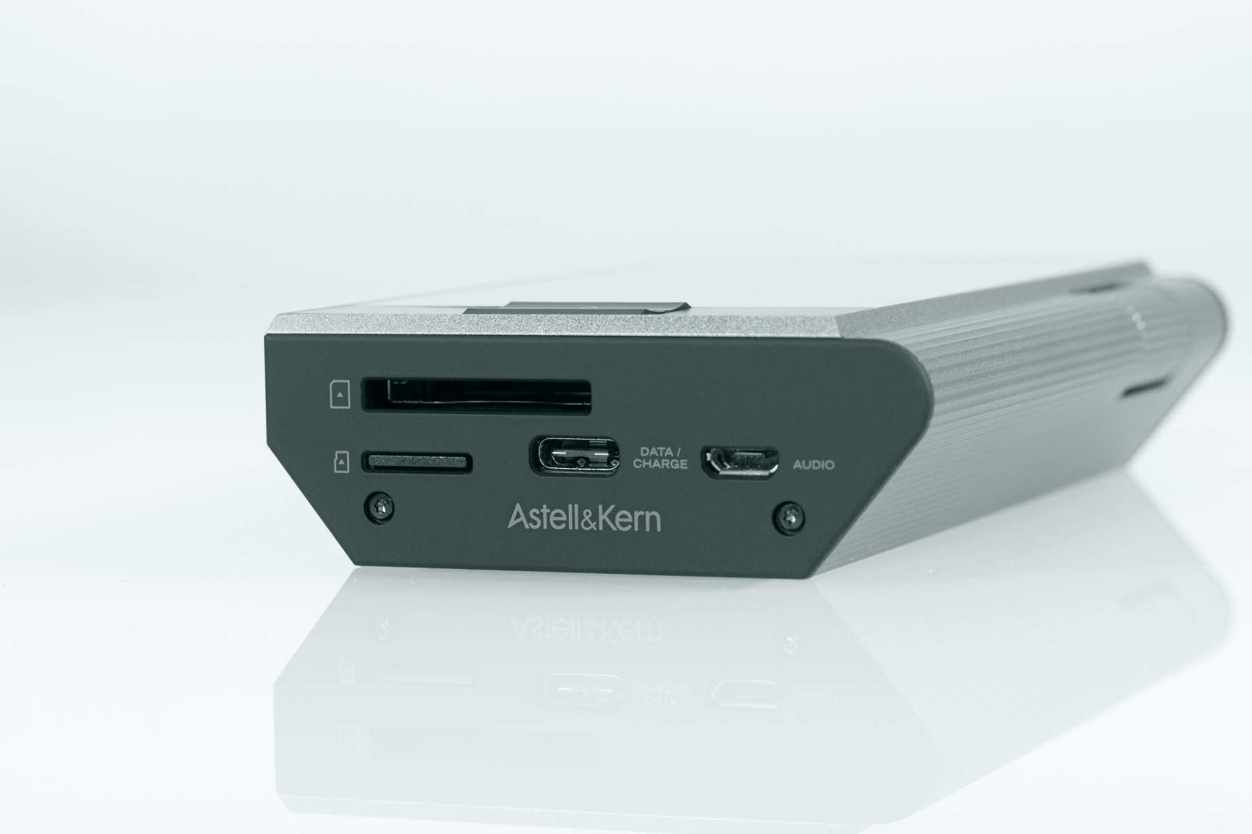 Корпус хорошо лежит в ладони благодаря скруглению правых граней и не выскальзывает — этому препятствует рифление. Интересно, что в плеере установлены сразу два разъема USB. Если у пользователя есть стационарная система ЦАП и усилитель для наушников, то можно использовать плеер как библиотеку файлов или как продвинутое устройство стриминга. В то же время, плеер отлично подойдет для прослушивания музыки вдали от дома.
