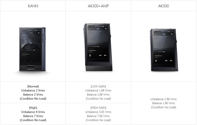 Усилитель для наушников плеера Kann способен выводить до 7 ВRMS, чего с лихвой хватит для самых сложных наушников. Усилитель тут не уступит по мощности комплекту плеер AK300 + усилитель AK300 Series AMP при вдвое более низкой цене Kann. Не стоит говорить, что вес и габариты Kann намного более комфортны для мобильного прослушивания. Для стационарной обстановки также есть несколько сценариев применения, включая режим звуковой карты при подключении к ПК по USB.
