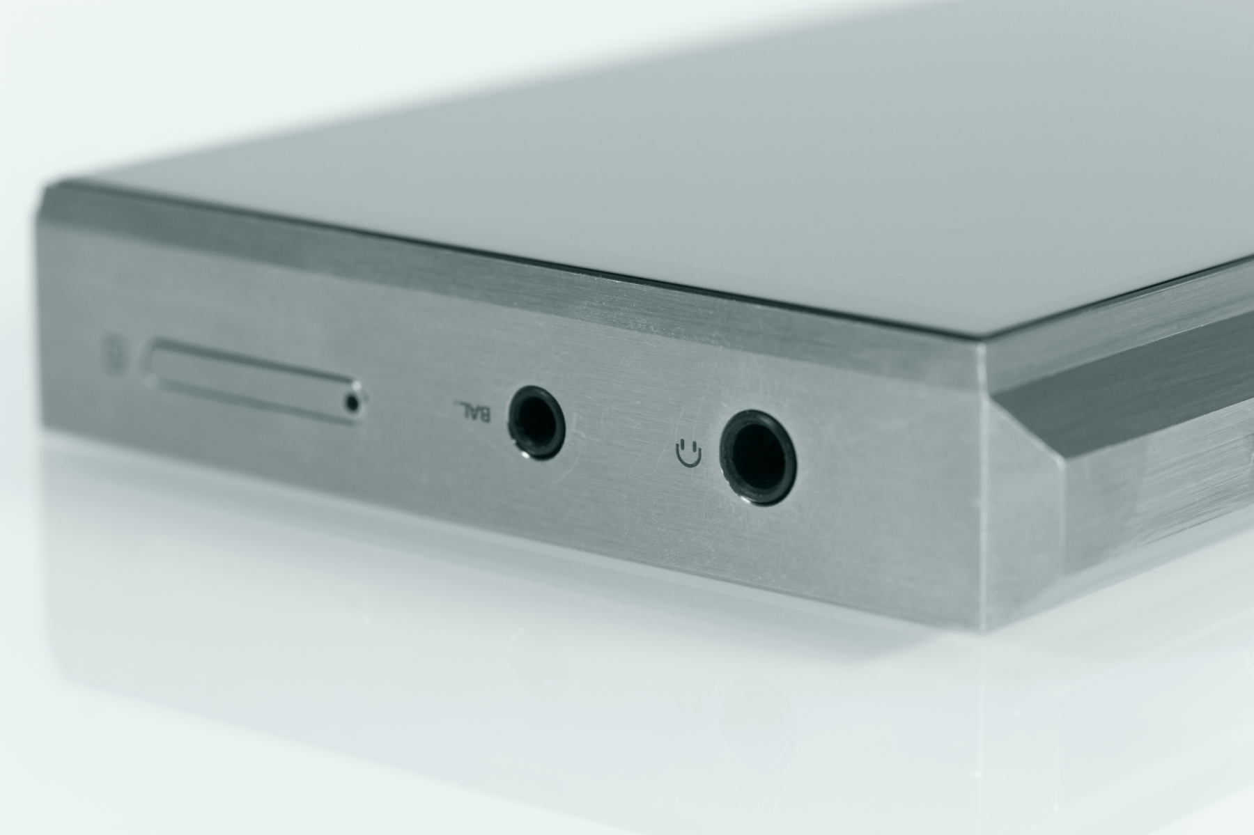 Необычный 5-контакный разъем служит для подключения по балансному соединению других устройств. По словам представителя компании, спецификации будут розданы партнерам Astell&Kern, и мы можем рассчитывать на появление совместимых устройств, активных колонок или усилителей мощности.