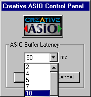Однако на компьютере с Athlon 1333 МГц и 512 PC133 работа при 2 мс была невозможна на фоне треска от выпадения семплов. 4 мс спасли ситуацию при воспроизведении. Возможно при записи понадобится выставить все 10. Но всё это не так страшно, по сравнению с отсутствием режимов 44,1 кГц и 96 кГц.