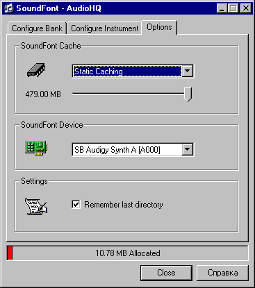 - поддерживает профессиональный формат семплов SF2.1 практически неограниченного размера банков (до 4 Гб);