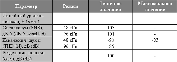 - цифро-аналоговые преобразователи 24 бит 96 кГц;
