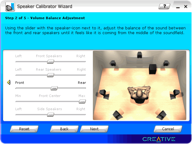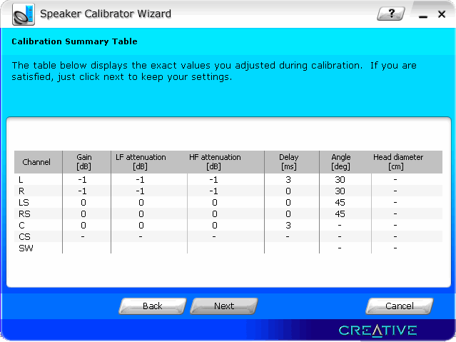 В драйверах отсутствует привычная THX панель, через которую удобно делать быструю калибровку АС, вместо нее работает пошаговая утилита Speaker Calibrator, действия которой направлены на калибровку каналов исключительно на слух.