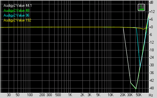 Audigy2 Value также корректно работает и на остальных частотах — 48 и 96 кГц (если принудительно выбрать соответствующий режим "для SPDIF").