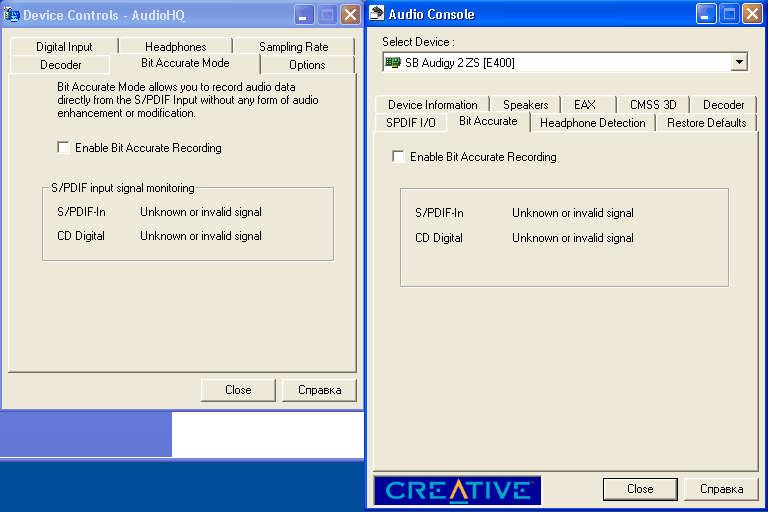 При запуске двух ASIO программ, использующих по одному из этих режимов, конфликтов нет. Это означает, что под "Creative ASIO" можно запустить, например, Wavelab, а под "SB Audigy 2 ASIO" foobar2000.