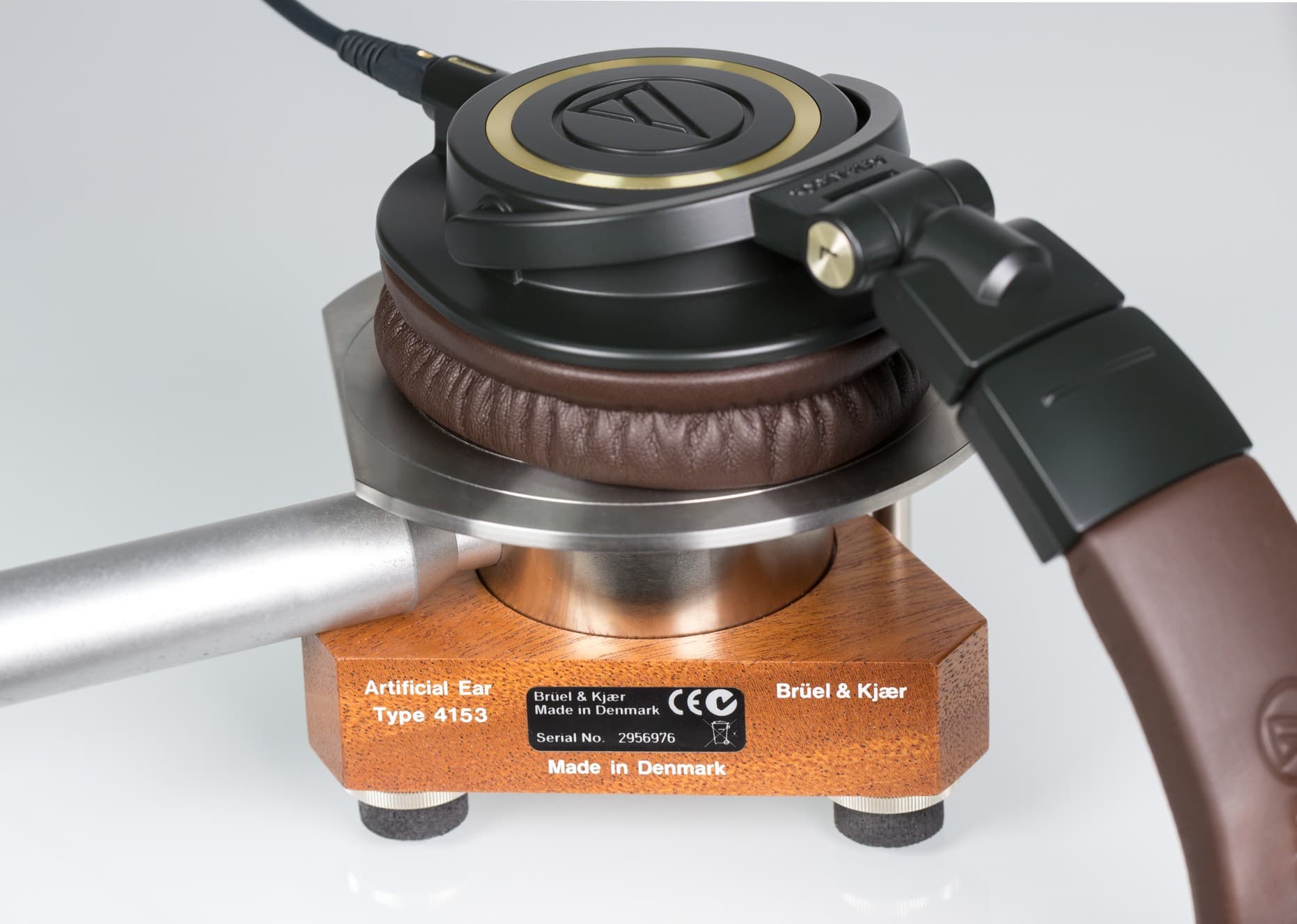 При измерениях использовался программно-аппаратный комплекс RightMark Audio Analyzer Pro нашей разработки и измерительный стенд Brüel & Kjær 4153 — Artificial Ear/Ear Simulator (IEC 60318-1), Сделано в Дании, стоимость около 5000 евро. Измерения АЧХ приводятся в качестве справочных — не стоит по ним угадывать звучание модели наушников! На АЧХ виден лишь диапазон частот и основные тенденции! Подъем АЧХ на НЧ у закрытых наушников сильно зависит от силы прижима чашки. Мы измеряем со стандартным усилием, создаваемым динамометром стенда.