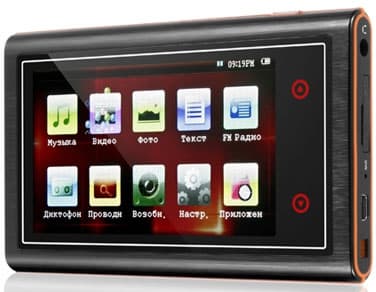 На правом боку сосредоточено все остальное, необходимое плееру. Выход на наушники, разъем для карт памяти microSD, микрофон, интерфейсный разъем и петля для крепления транспортировочного шнурка. Впрочем, без последнего вполне можно обойтись, нося плеер прямо в кармане (да и тяжеловат он, чтобы вешать его на шею). Однако шнурок может пригодиться тем, кто не желает тыкать в дисплей пальцами — хотя данная модель рассчитана именно на такой интерфейс с пользователем, стилус специфического вида в комплекте есть. Но для его ношения ничего не предусмотрено. Только на шнурок и можно вместе с плеером повесить.