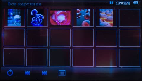 Поскольку диагональ дисплея достаточно велика, данная функция тоже будет пользоваться популярностью. Жаль только, что, в отличие от видео, нельзя перенаправить вывод фотографий на внешнее устройство отображения — очень удобно было бы ездить с получившимся «фотоальбомом» в гости к родственникам, до сих пор не имеющим ни компьютера, ни стационарного видеоплеера. Зато можно устроить слайд-шоу (картинки будут сменять друг друга через 2, 3, 5, 10 или 20 секунд), в том числе и под музыку, поворачивать изображения и изменять их масштаб. Увеличить более «реального» размер не удастся, однако, поскольку большинство фотографий имеет размер куда больший, чем 480 × 272, это все равно полезная возможность. Фотографии можно вращать, а также есть возможность включить режим автоматического поворота — в этом случае при открытии картинки будут поворачиваться таким образом, чтобы наиболее полно использовать дисплей.