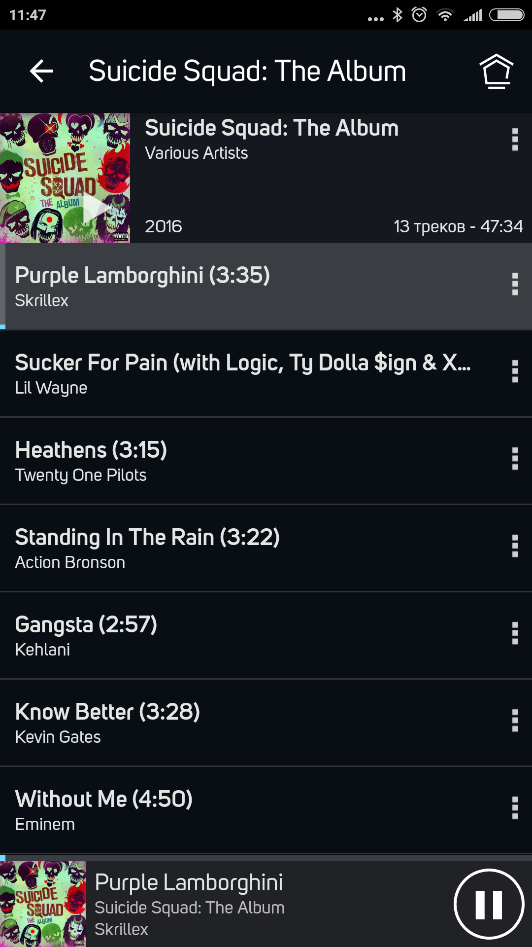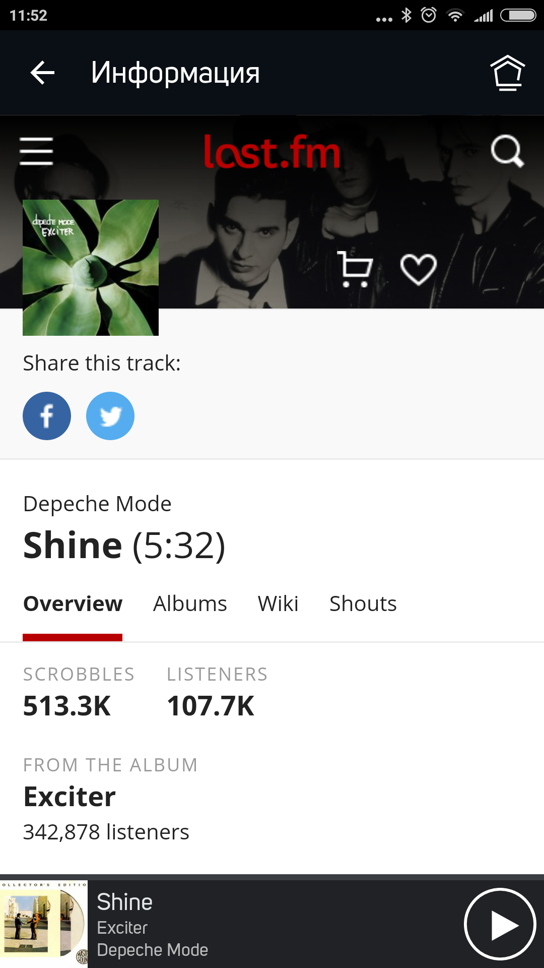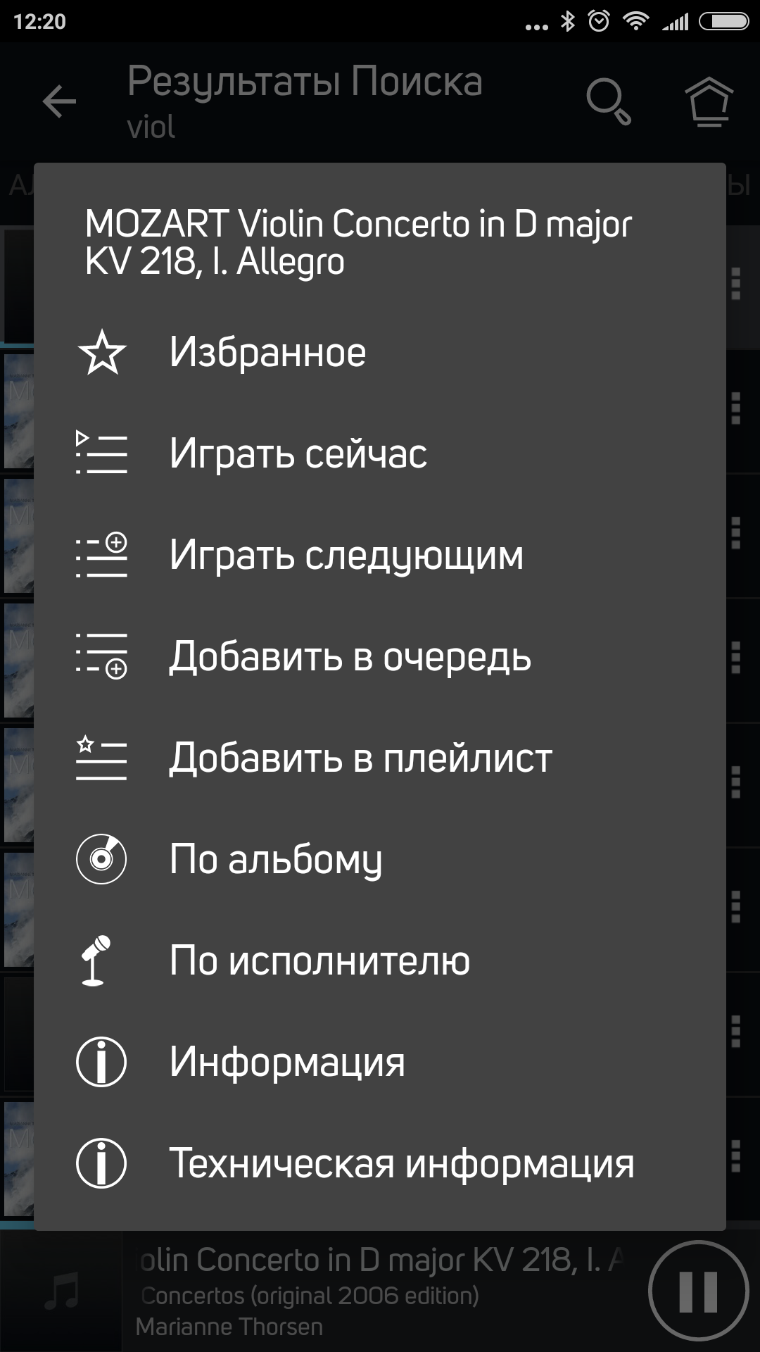 Окно плеера поддерживает альбомный вариант ориентации экрана мобильного устройства. Кроме управления громкостью и воспроизведением, здесь вы можете узнать информацию о треке с использованием сервиса last.fm и технические данные файла. Дополнительно его качество показывается логотипом — CD, HD или MQA.