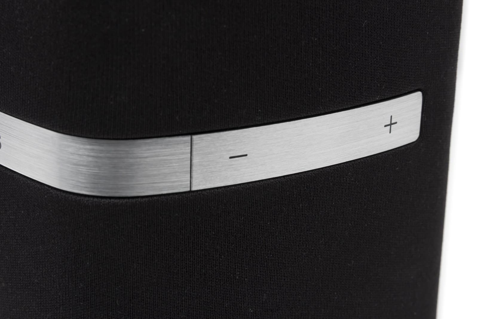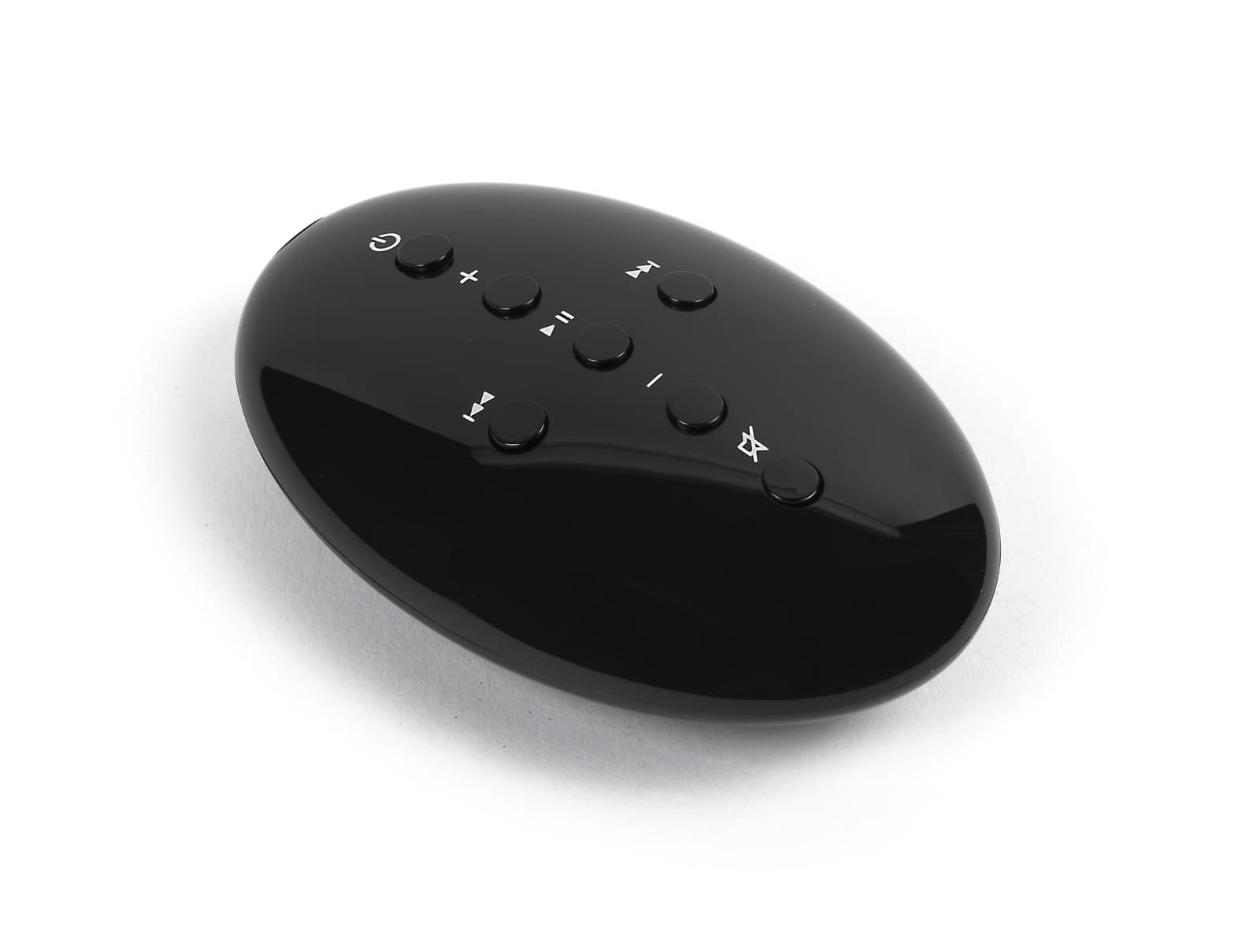 ПДУ работает от одной плоской батарейки и уверенно соединяется с колонками в пределах крупной комнаты (как минимум, на расстоянии пяти метров).