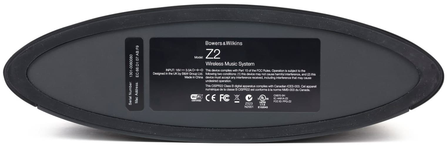 Bowers & Wilkins Z2 не занимает много места по ширине и может быть легко установлена на полке. Однако надо учесть, что к десяти сантиметрам самого устройства прибавится еще сантиметра три, которые займет вилка сетевого адаптера.