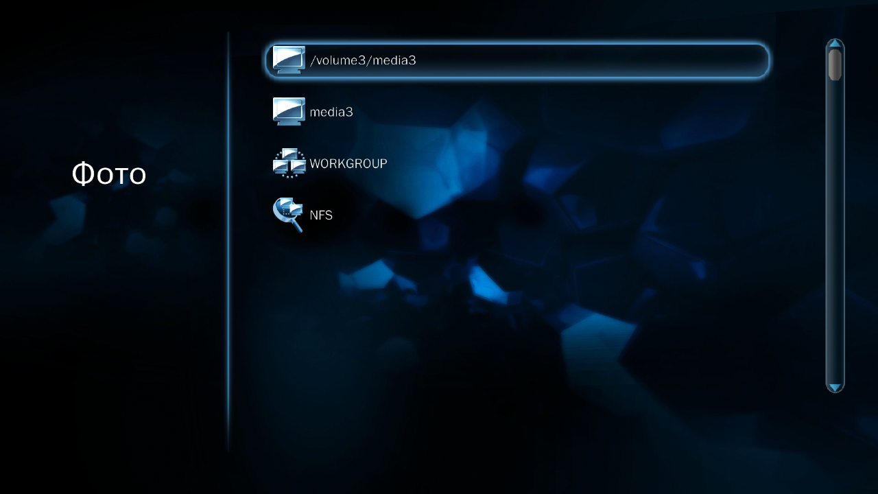 На следующем этапе нужно выбрать источник для файлов — встроенный винчестер, USB-накопитель или сеть. На USB-дисках может быть несколько разделов. Поддерживаются файловые системы EXT2/3, FAT32 и NTFS (только на чтение). Файлы могут иметь и русские имена — все работает корректно, в том числе и по сети.