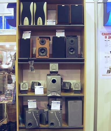 К счастью, на Комтеке была представлена акустика на любой вкус и кошелёк. От самой дешёвых компьютерных до дорогих напольных колонок. Была представлена даже профессиональная акустика для домашних и бюджетных студий.