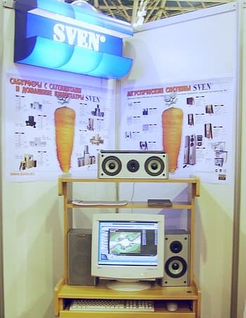 Переходим к более интересным колонкам SVEN Audio, которые уже сейчас появились в продаже в различных околокомпьютерных фирмах. Колонки не пытаются составить конкуренции распальцованным Hi-End брендам, однако успешно себя чувствуют в нише недорогих звуковых решений для народа. Идеология фирмы — не содрать с покупателя как можно больше денег, а скорее сделать аппаратуру для просмотра DVD доступной обычным людям. Все колонки сделаны в Китае, однако по заявлению представителей фирмы SVEN в качестве партнёров были отобраны только самые лучшие производители.