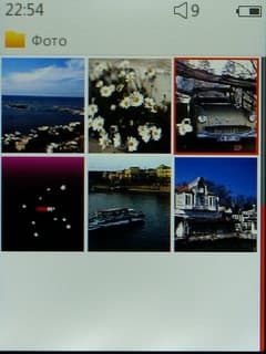 Плеер отображает список картинок в виде матрицы из превью-изображений. Есть два варианта — либо плеер автоматически ищет все фотографии в памяти и выводит их все разом, либо вы сами выбираете нужную папку. Фотографии можно поворачивать на 90 градусов и зуммировать, впоследствии «перемещаясь» по ее частям.