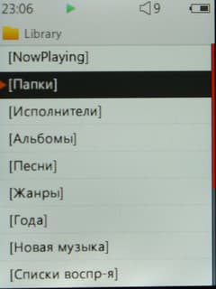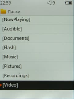 Библиотека состоит не только из тех категорий, которые относятся к музыке, но и из таких пунктов, как «Видео», «Flash-файлы», «Документы». То есть, слушая музыку, не обязательно выходить в главное меню, чтобы открыть, допустим, видеоролик. Можно добраться до библиотеки и открыть его сразу оттуда. Удобно еще то, что в каком бы месте библиотеки вы ни находились, первым пунктом списка всегда идет «Now Playing», то есть вы можете быстро вернуться к окну воспроизведения.