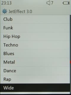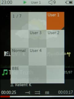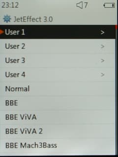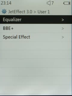 Некоторые настройки можно осуществить прямо при воспроизведении. Во-первых, это эквалайзер. Есть четыре пользовательских режима, а также огромное количество предустановок как «обыкновенных», так и фирменных, под маркой BBE. Пользовательский эквалайзер стандартный Cowon'овский: пятиполосный, но полосу пропускания и регулируемую частоту можно настроить вручную. Поверх эквалайзера можно также включить опции «улучшайзера» BBE и наложение реверберации и усиление стереоэффекта.