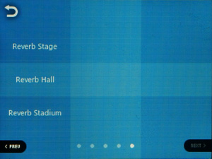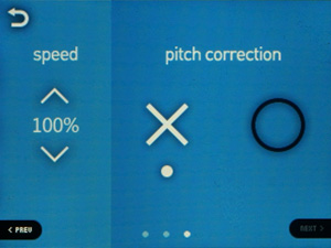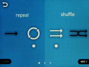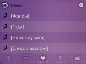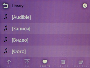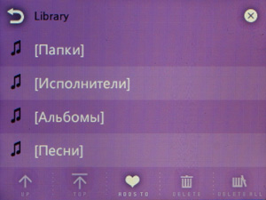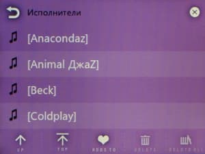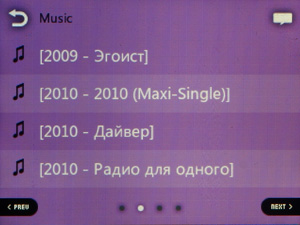 Списки теперь прокручиваются не нажатием на пиктограммы, а скользящим движением пальца — как во всех современных сенсорных устройствах. Но реализация прокрутки не идеальная: полосатый фон стоит на месте, движется только список, что иногда сбивает с толку. Чувствительность экрана и алгоритм скольжения списка тоже недостаточно хорошие. Длинные списки прокручивать не очень удобно, так как в экран влезает всего 4 строки с названиями песен.