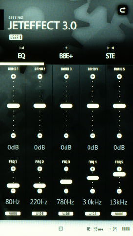 Звучание плеера производит очень приятное впечатление со всеми вышеназванными наушниками. Как с низкоомными, так и с «обычными» наушниками звучание плеера очень ровное, искажения практически не слышны. Огрехи АЧХ наушников можно подправить с помощью очень плавно настраиваемого эквалайзера. Жаль, что он всего пятиполосный, но зато предоставляет свободу действий, недоступную в прочих плеерах.
