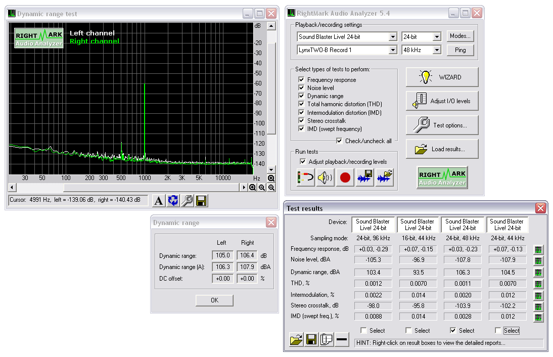 Тестовыми играми являлись, Call of Duty, NFS underground, Hevy Metall, Thief 3. Сравнивалось звучание с Sensaura3D и QSound. Игры оценивались в наушниках Philips HP195. Локализация у Live! 24-bit на порядок выше, чем у остальных. Особенно порадовал Thief 3. Факелы четко потрескивали, при этом ревербация от них чувствовалась, но не была осязаема. В то время как в QSound ревербация слышалась скрежетом посередине. Звук у Live! 24-bit по сравнению с Sensaura четче по локализации и звучит мягче.