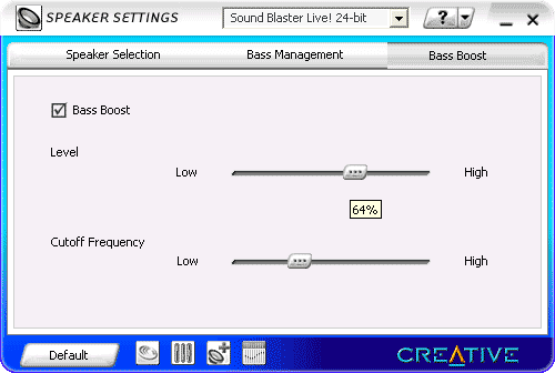 Панель конфигурации динамиков Speaker Settings — Bass Boost