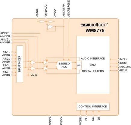 Four Stereo ADC Inputs with Analogue Gain Adjust from +24dB to –21dB in 0.5dB Steps