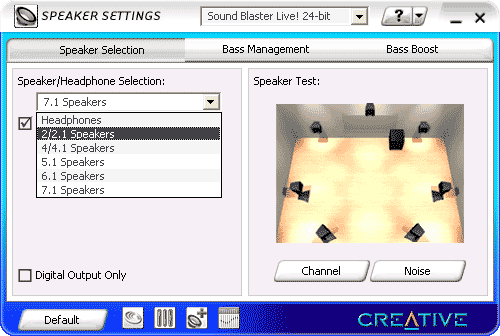 Creative Diagnostics Посмотрим на панели настроек драйвера: