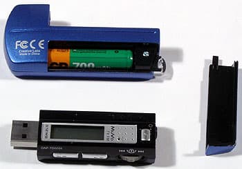 Развитие Li-Ion/Li-Pol-аккумуляторов в последнее время привело к возрастанию популярности плееров со встроенным аккумулятором и зарядкой от порта USB. Такая схема имеет достаточно много плюсов, однако некоторые пользователи относятся к ней настороженно, в первую очередь из-за того, что аккумуляторы имеют ограниченный срок жизни, а сменить их не всегда просто. На мой взгляд, проблема скорее надумана, чем реально существует — через год-полтора возможно захочется сменить плеер на что-нибудь более современное (прогресс в этой области движется семимильными шагами), независимо от состояния аккумулятора. Впрочем, каждый решает сам. Для тех же, кто предпочитает «классическую» схему электропитания, новинка от Creative будет настоящей находкой, поскольку работает от обычного элемента питания типа ААА. Заявленное время работы составляет 15 часов, аккумулятор садится несколько быстрее, однако можно уверенно говорить о более чем 10 часах непрерывной работы, что в обычном «городском цикле» (дом-работа-дом) реально дает несколько дней работы от одной зарядки.