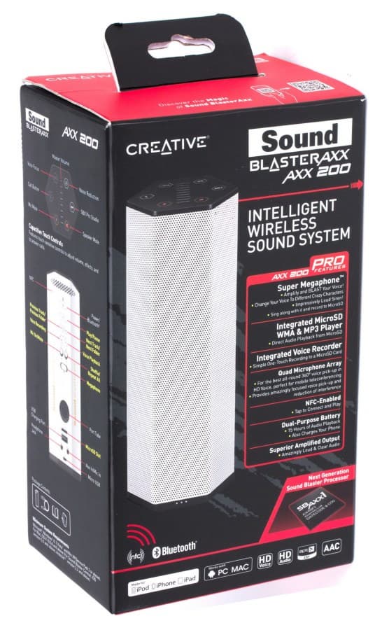 Акустическая система Creative Sound BlasterAxx Axx200 представляет собой многофункциональное решение с интересным и привлекательным дизайном. В списке возможностей устройства отдельного внимания заслуживает режим караоке — технически несложный в исполнении, но отлично подходящий для всевозможных вечеринок.