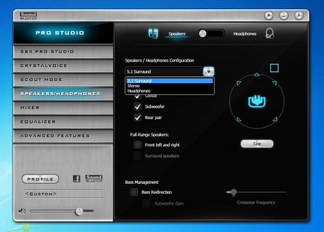 Сравнительное прослушивание ставит SoundCore3D в один ряд с типичным недорогим интегрированным кодеком Realtek. Утешительный момент только один: очень хороший выход на наушники, дающий фору любому интегрированному звуку. Положениия регулятора громкости на 40% хватает для самых низкочувствительных и высокоомных наушников. Однако в этом нет большой заслуги Creative — так работает установленный внешний буфер производства Texas Instruments. Точно такая же реализация и в звуковых картах серии Z, но там это сделано с применением существенно лучших компонентов.