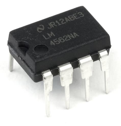 - National Semiconductor LM4562NA: скорость нарастания выходного напряжения 20 В/мкс, Кг+шум 0,00003%, шум 2,7 нВ/√Гц,