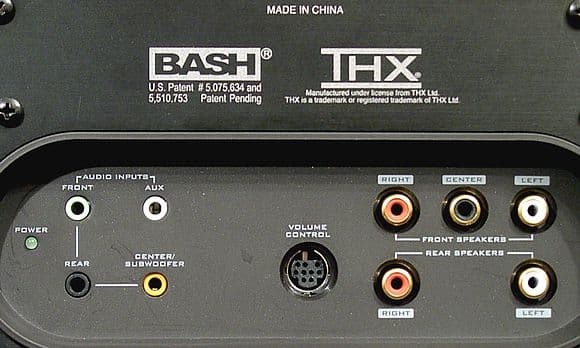 В отличие от сателлитов, деревянный сабвуфер комплекта THX 550 несколько изменился. Производитель решил увеличить отдачу в области самых низких частот и добавил фазоинвертор. Его отверстие выведено на боковую панель, в верхней части.