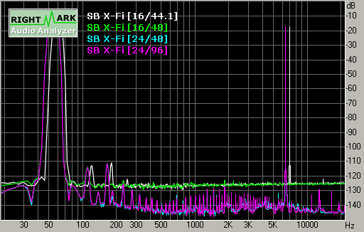 Судя по измерениям, проблема с большим количеством искажений — дело прошлого. Режим 44.1 кГц в картах X-Fi ничем не отличается от 48 кГц.
