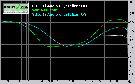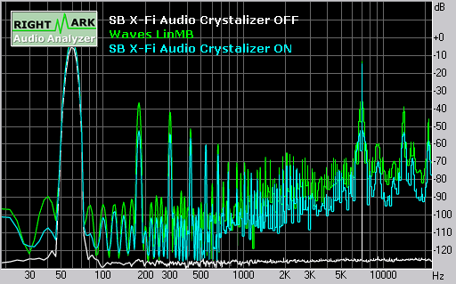 Чтобы удостовериться на все 200%, я протестировал Crystalizer нашей программой RMAA и сопоставил с результатами Waves LinMB Linear Phase MultiBand compressor (со стандартным пресетом Low-Level Enhancer — сообщаю для тех, кто захочет повторить измерения). Тесты были проведены с настройкой Crystalizer по умолчанию, в среднем положении.