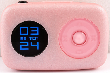 Внешне плеер практически полностью идентичен предшествующей модели без динамика, за исключением изменения покрытия корпуса. На лицевой панели расположена круглая кнопка-«качелька», предназначенная для изменения уровня громкости и переключения треков, в середине которой расположена кнопка включения. «Кругляш» этот, кстати, остался глянцевым, что придает некоторую изюминку внешнему виду. У нас была модель черного цвета, также существуют модели темно-синего, розового и кремового цветов.