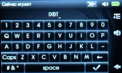 Плеер поддерживает плейлисты формата M3U, которые создаются либо с помощью фирменной программы Creative Centrale, либо на самом девайсе. Для этого следует галочками отметить желаемые композиции, после чего они помещаются в предварительный список, которому затем назначается имя с помощью довольно удобной экранной клавиатуры: