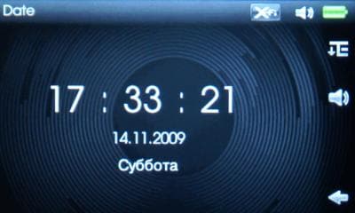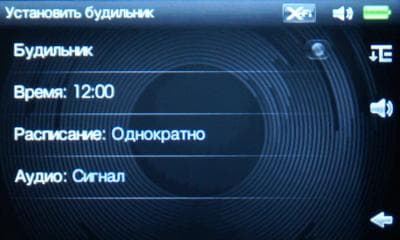 В главное меню вынесена функция «Время». Помимо часов с отображением дня недели и даты, имеется и будильник. Его сигналом на ваш выбор станет либо песня, либо частота радиоприемника, либо стандартный сигнал, либо диктофонная запись.