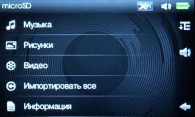 X-Fi 2 поддерживает карты памяти формата microSD и microSDHC объемом до 16 Гбайт (что указано на официальном сайте, а проверялась карта объемом 8 Гбайт). При этом переработан браузер карты памяти по сравнению с 1-й версией модели. Доступ к карте осуществляется через отдельный пункт главного меню. Ранее там просто показывались файлы и папки, имеющиеся в памяти. Теперь же при каждом открытии содержимое сканируется (что иногда надоедает) и, как и содержимое внутренней памяти, выстраивается в библиотеку. Весь контент с карты можно импортировать во внутреннюю память плеера. К глубокому сожалению, отдельные файлы импортировать нельзя.