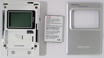 И плеер действительно открывается. Однако, после снятия передней панели вместо кассеты мы видим отсек для аккумулятора. Li-Ion аккумулятор стандартизован компанией применяется во всей линейке Zen и новых плеерах серии MuVo2. Большим плюсом является то, что его можно приобрести отдельно, а два аккумулятора на практике удобнее, чем один.