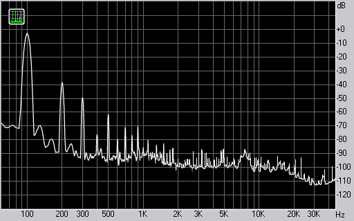Спектр сигнала, воспроизводимого колонкой при подаче частоты 100 Гц