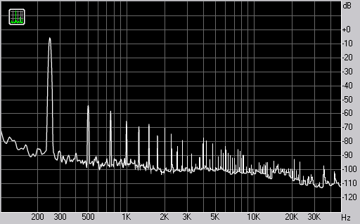 Спектр сигнала, воспроизводимого колонкой при подаче частоты 250 Гц