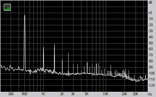 Спектр сигнала, воспроизводимого колонкой при подаче частоты 500 Гц