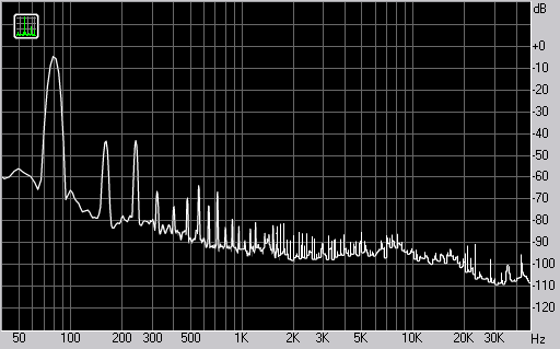 Спектр сигнала, воспроизводимого колонкой при подаче частоты 80 Гц