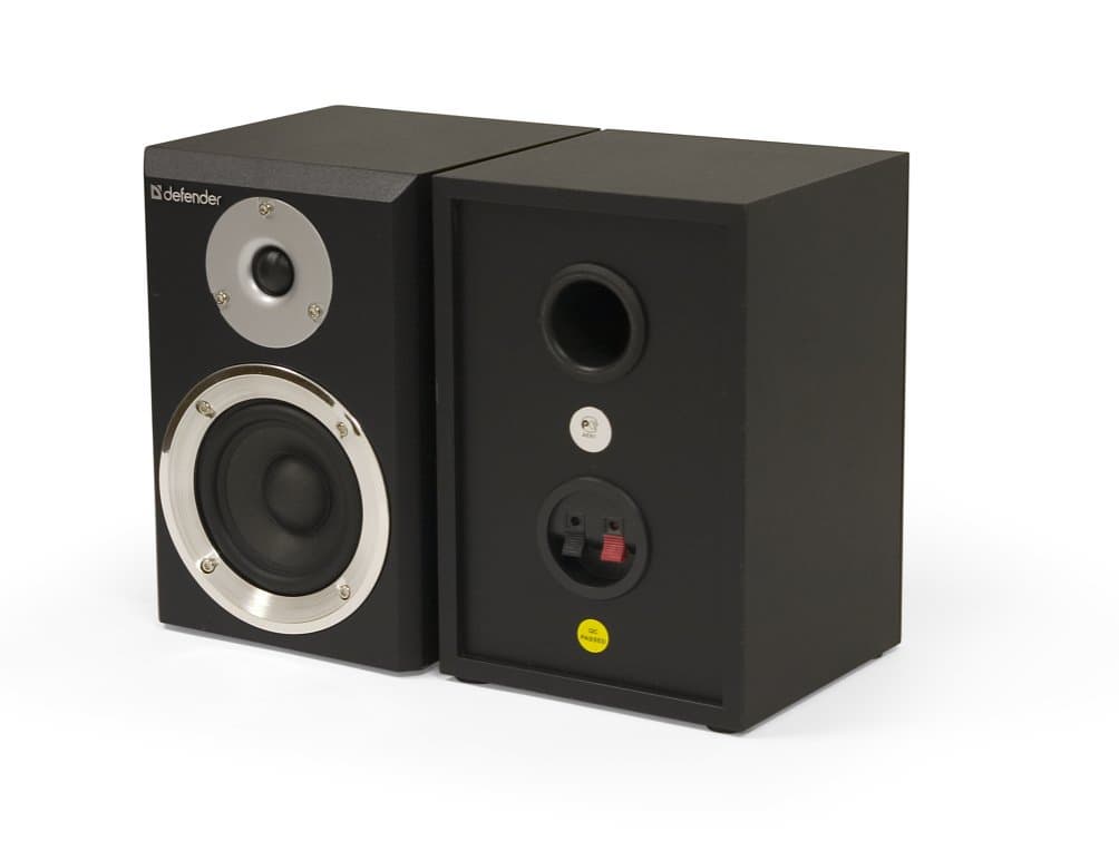 Внешний вид колонок во многом напоминает дизайн активных стереоколонок Defender Mercury 55. В продаже можно будет встретить два варианта расцветки корпуса: черный цвет и бук. У нас на тестировании был более строгий первый вариант.