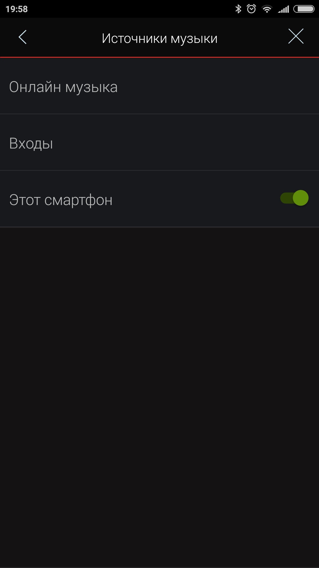 Кроме того, в списке присутствуют пункты пользовательских плейлистов, истории и избранного. Здесь стоит обратить внимание на то, что большинство вариантов, включая трансляции с онлайн-источников, медиасерверов, локальных устройств и входов, не требуют работы утилиты на смартфоне. То есть она может быть выключена и выгружена из памяти мобильного устройства. Правда в этом случае есть риск «потерять управление» и остаться без возможности быстро выключить звук по сети.