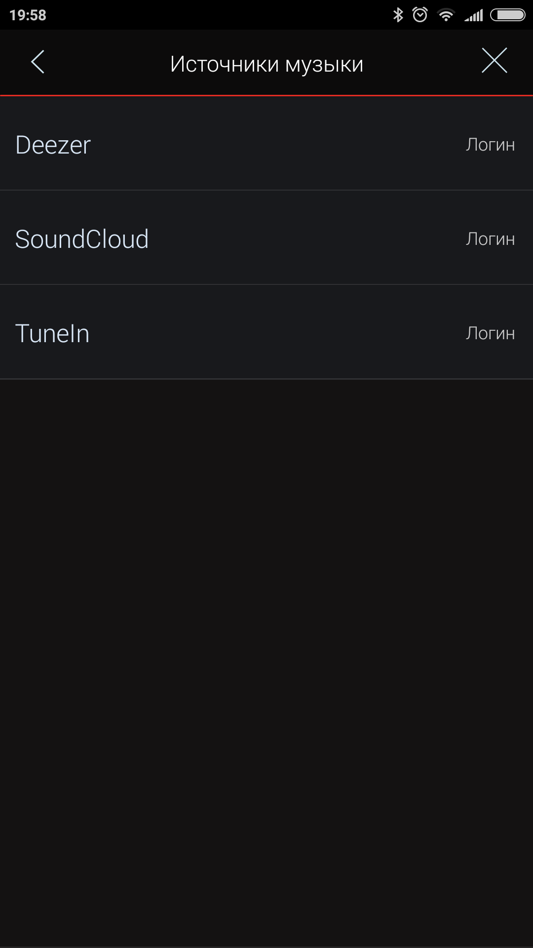 - сетевые сервисы tunein, Deezer и SoundCloud (список для работы на нашем рынке);