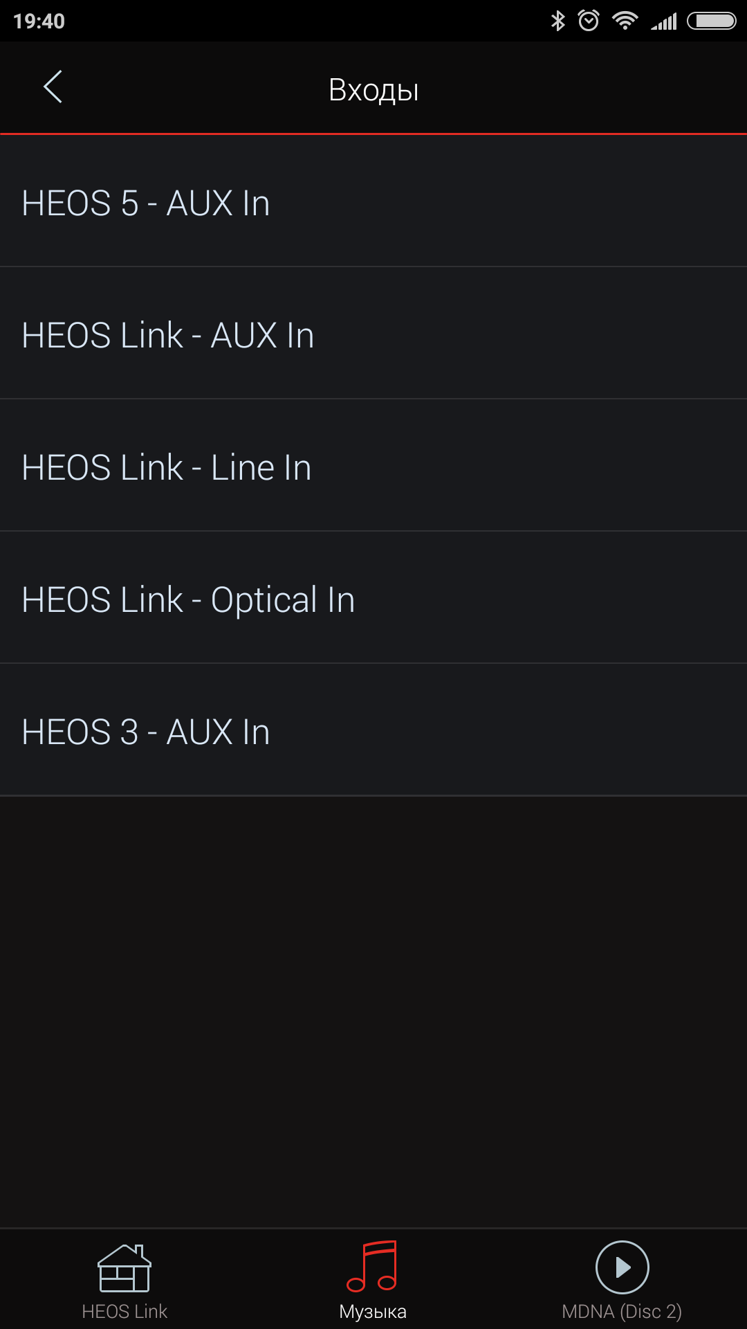 Большинство моделей имеет отдельный аналоговый стереоаудиовход, а в устройстве Heos Link есть и два цифровых входа. Их можно выбирать в меню как источники. Это позволяет транслировать музыку из одной комнаты (например, с традиционного радиоприемника или проигрывателя для винила) на любые колонки в составе системы. Вероятно, для данного сервиса также используется протокол DLNA.
